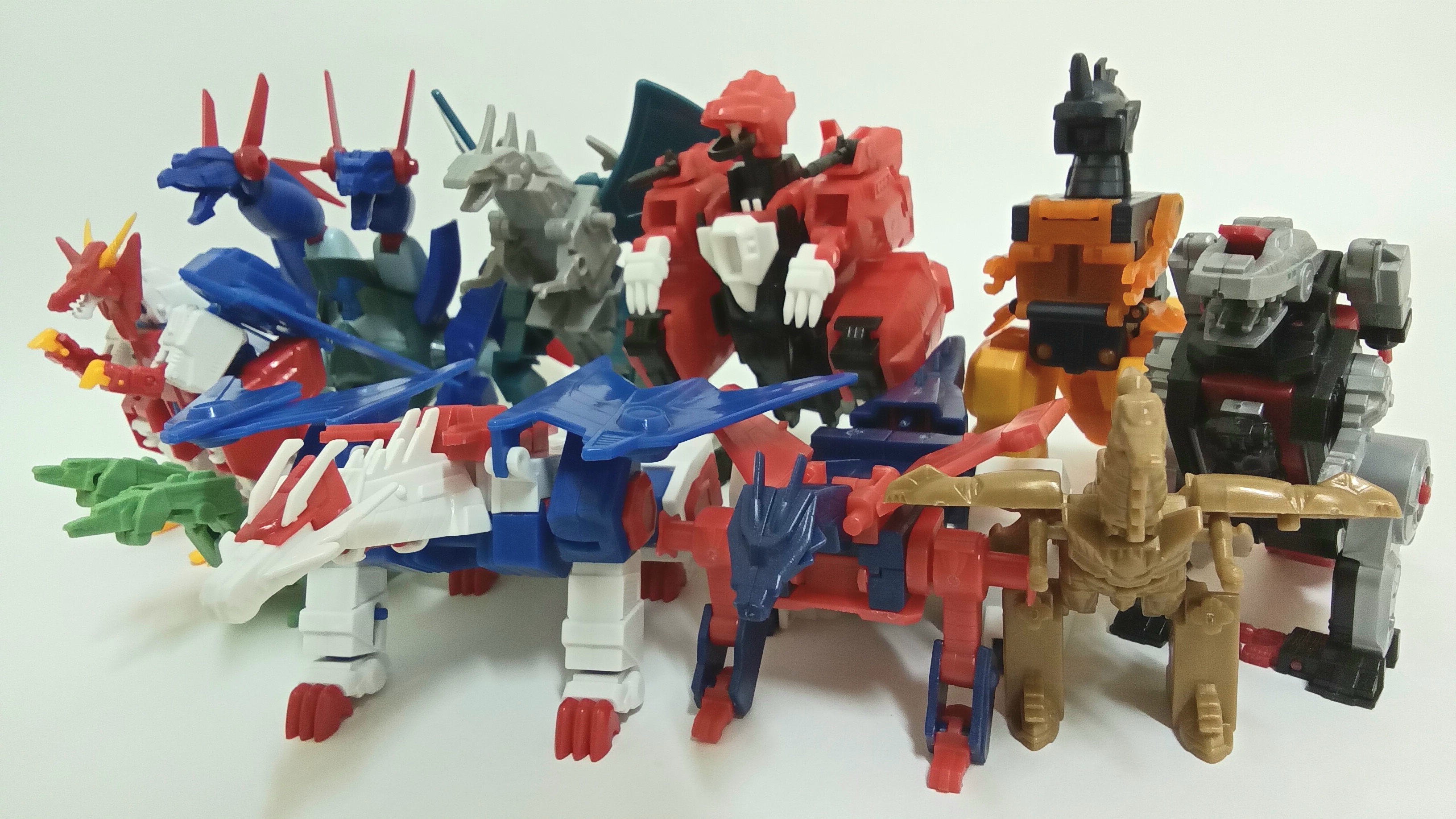 日本動漫中以龍作為形象所設計出來的機器人,幾乎都以「西洋龍」的外形作為參考範本:頭跟背有犄角,頸子長又粗,健壯的四肢,長尾巴,背部有類似蝙蝠的翅膀;亦或混著「霸王龍」身形,頸子粗短,前肢短小,後肢強健。在西方,龍通常象徵為邪惡的巨獸,但日本動漫有時也會將其美化為正義的角色,不管是正義還是邪惡,其機體的設計都令我極其喜愛。撇開「真實恐龍」類型機器人,以下是我關於「龍」的可變形機器人食玩模型收藏。