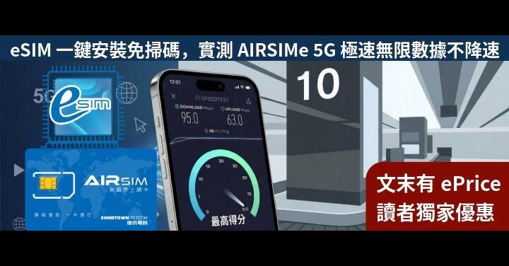 eSIM 一鍵安裝免掃碼,實測 AIRSIMe 5G 極速無限數據不降速!文末有 ePrice 讀者獨家優惠
