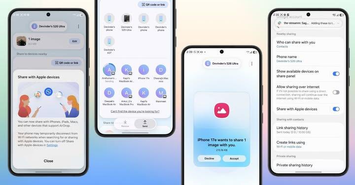 Samsung 宣布,旗下旗艦新機 Samsung Galaxy S26 系列將支援與 AirDrop 互通的檔案傳輸功能。透過自家 Quick Share 更新,用戶無需安裝第三方應用程式,即可在 Galaxy 手機與 iPhone、iPad 及 Mac 之間直接傳輸檔案。該功能已於 3 月 23 日率先在韓國上線,近日已針對包括台灣在內的多個市場提供更新。