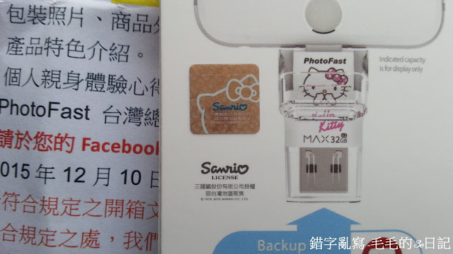 關於隨身碟就介紹到這兒唷,PhotoFast x Hello Kitty MAX 蘋果專用隨身碟著實是個不錯的產品,也可以說這系列的產品都很棒,一個能夠讓IOS使用者不用透過電腦便可快速的將IOS裝置裏的照片,音樂給讀取出來,同時能夠解決iPhone容量空間不足又無法插卡擴充的問題,另外還能夠把手機裏重要的聯絡人、行事曆、照片等等資料輕鬆的備份,真心的推薦給使用iOS的朋友唷~這是我的粉專 歡迎來找我玩喔~