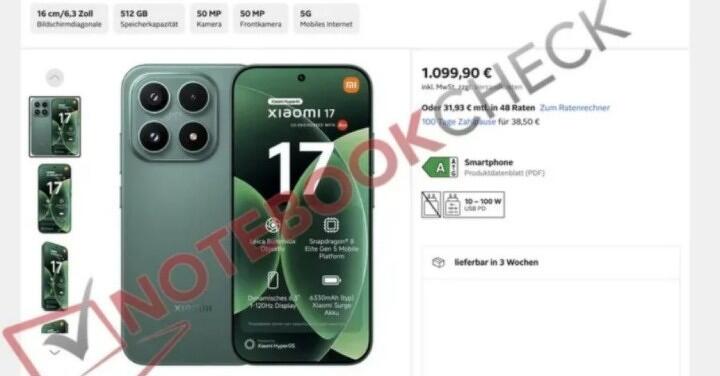 至於價格方面,也出現了值得關注的差異,其中一份來自德國通路的清單顯示,小米 17 的 512GB 版本售價可能來到 1,099 歐元,約合新台幣高達 41,160 元,但由於 256GB 才是該機的入門配置,推測實際起跳價有機會壓在 999 歐元,但同樣不便宜,約合新台幣 37,415 元左右。