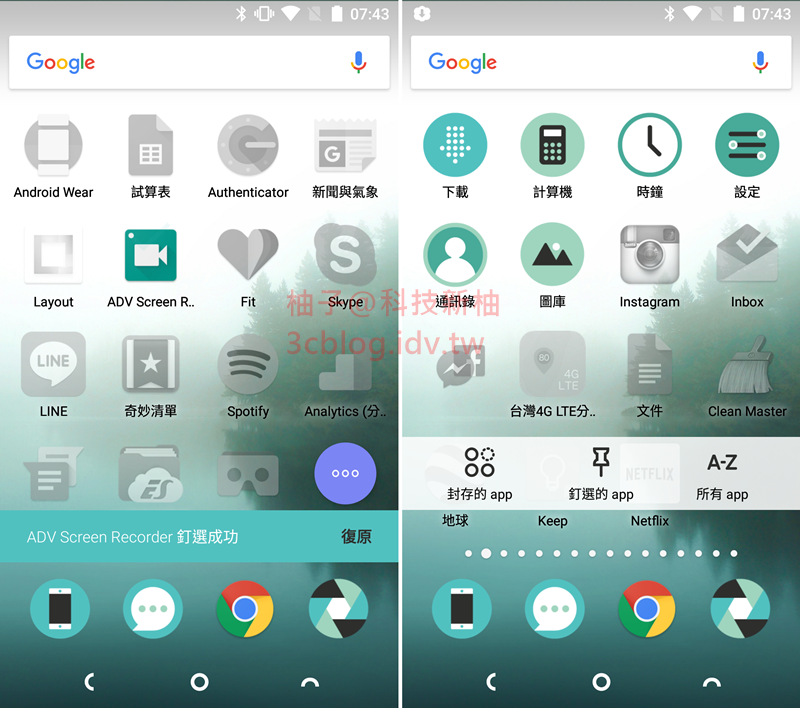 ▲ 在想要釘選的 App 圖示往下拉就會出現釘選成功的提示(圖左);如果要看封存的 App 或是釘選的 App,在每一頁的最後一格捷徑都可以直接按下後查看(圖右)。