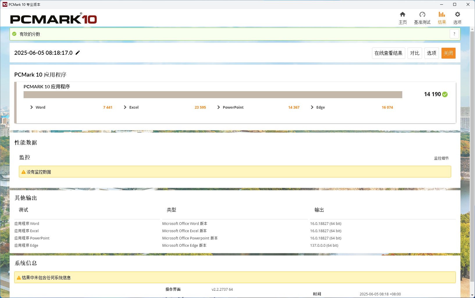 以 Microsoft Office 為測試主體的 PCMark Application 得分 14,190。