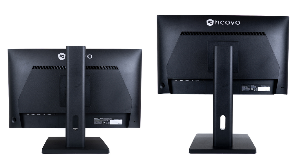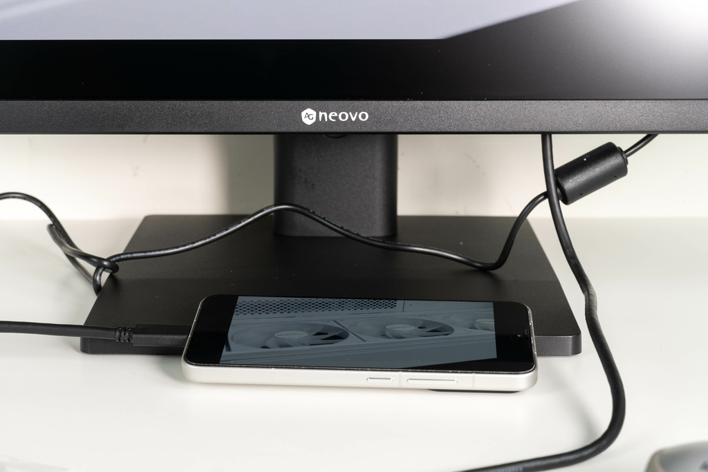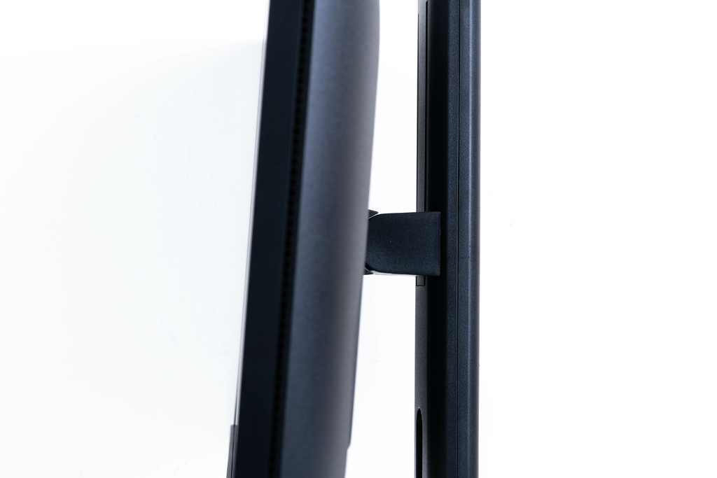 相較於同價位產品大多將支架成本削減至僅具備基本支撐功能,AG Neovo 則大方地提供了一組全功能支架,支援上下俯仰、左右旋轉、高低升降與垂直旋轉,讓使用者能輕鬆調整至最佳觀看角度,甚至將螢幕垂直使用。