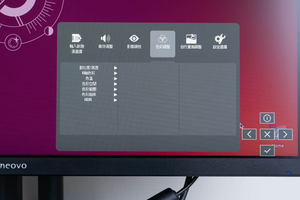 OSD 的選單完整且易用,想找的功能都在該出現的位置,搭配搖桿控制,操作很簡單。