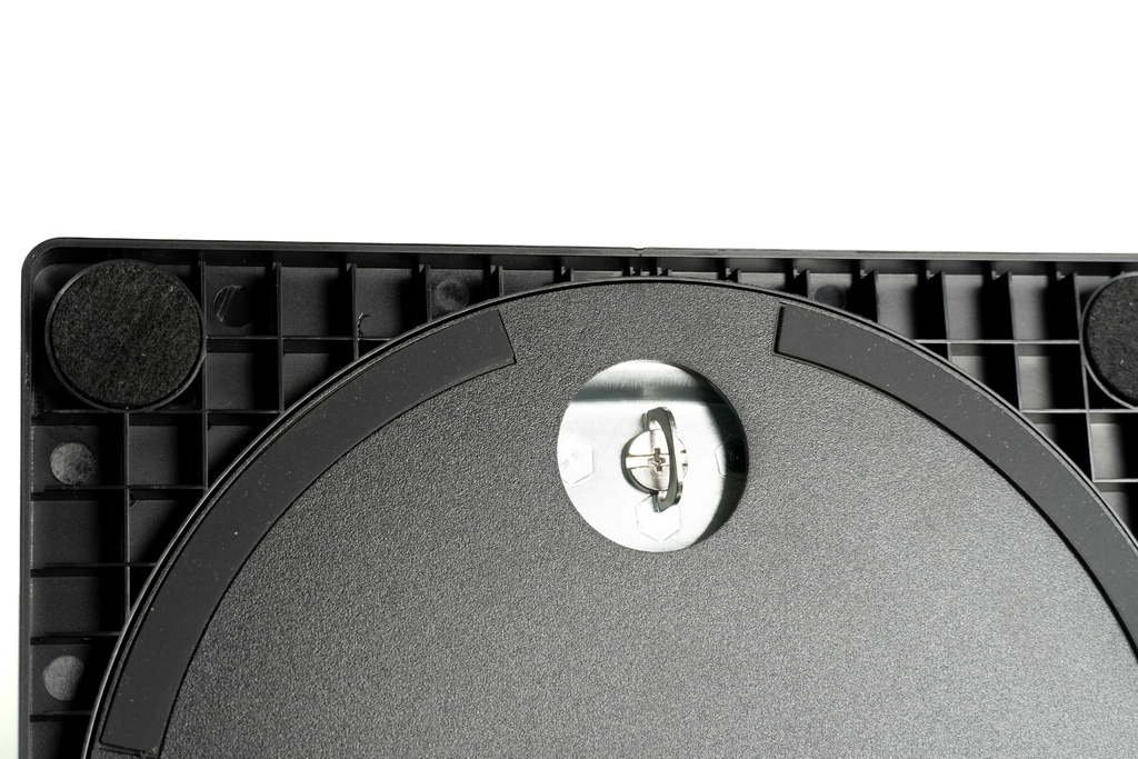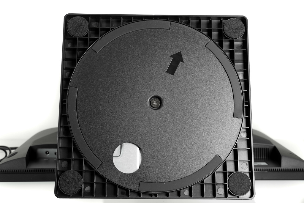 有趣的是,其底座內建了一個轉盤機構,螢幕的左右旋轉功能便是透過它來實現的。這也就代表,螢幕左右旋轉時,底座的這面也會跟著一起旋轉,挺特別。如果你會習慣把東西架在螢幕腳架上的話,這點需要注意。