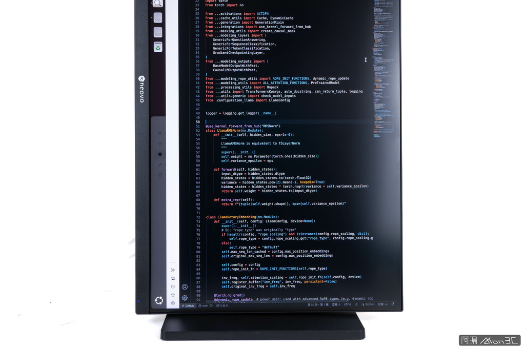 螢幕可以直立,而這功能最大的受益者就是碼農了。一次就可以瀏覽多行程式碼,搭配 4K 解析度的加持,程式碼一清二楚,文字也不會出現彩邊,令眼睛舒服許多。